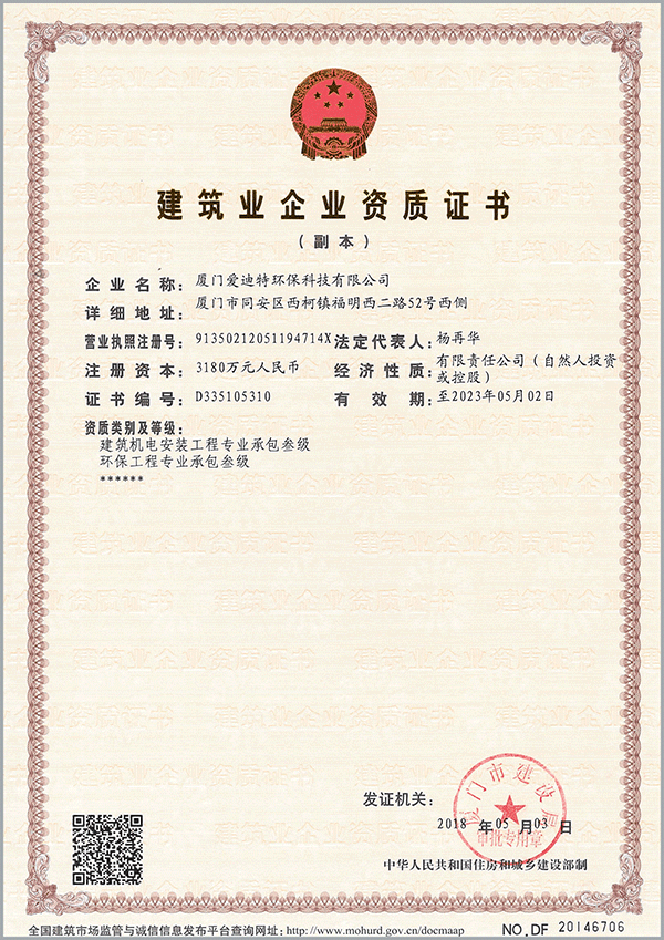建筑機電安裝工程專業承包叁級,環保工程專業承包叁級
